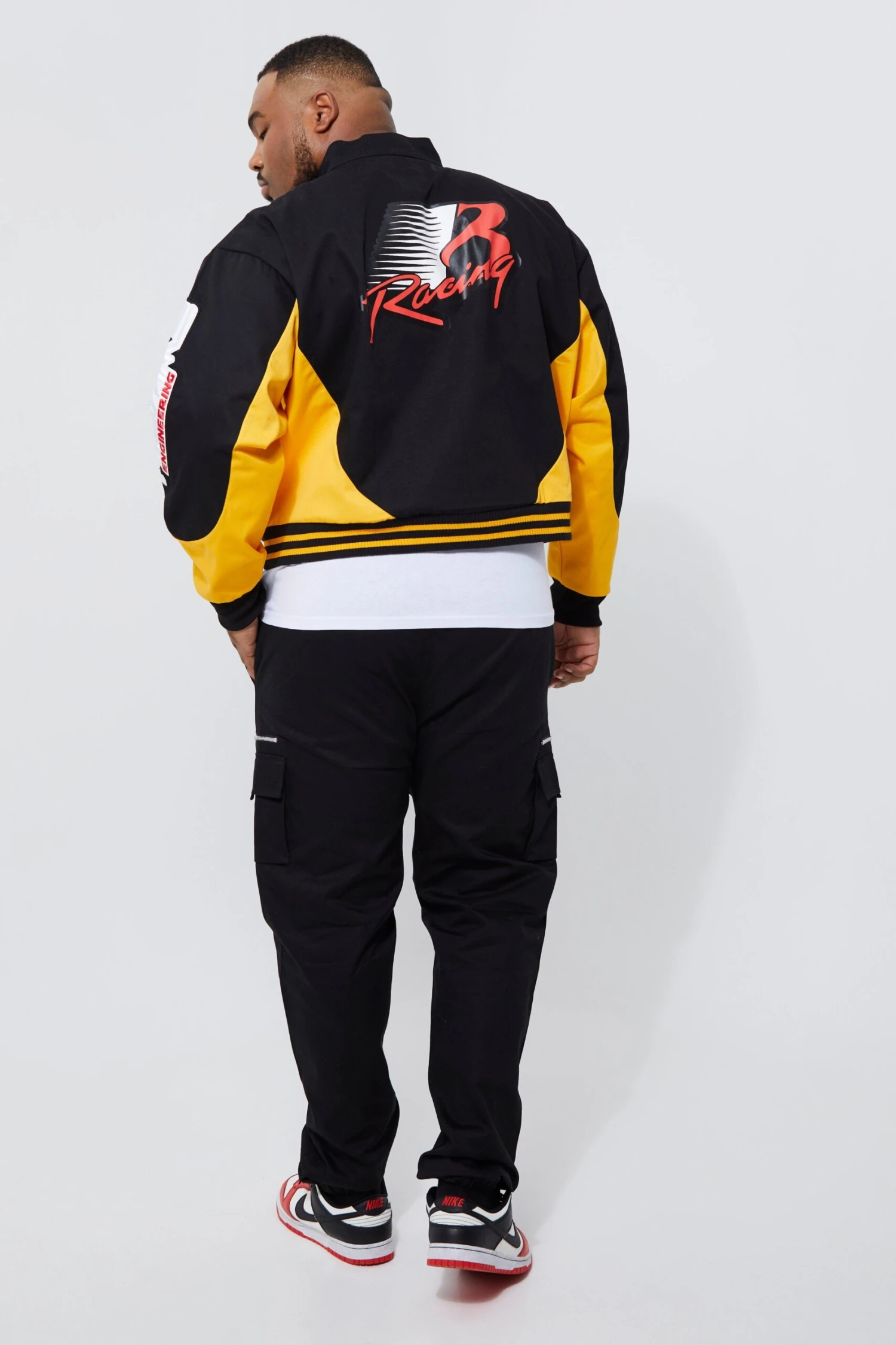 100% Cotton. Model is 6’1 and wears size 3XL/ 42.