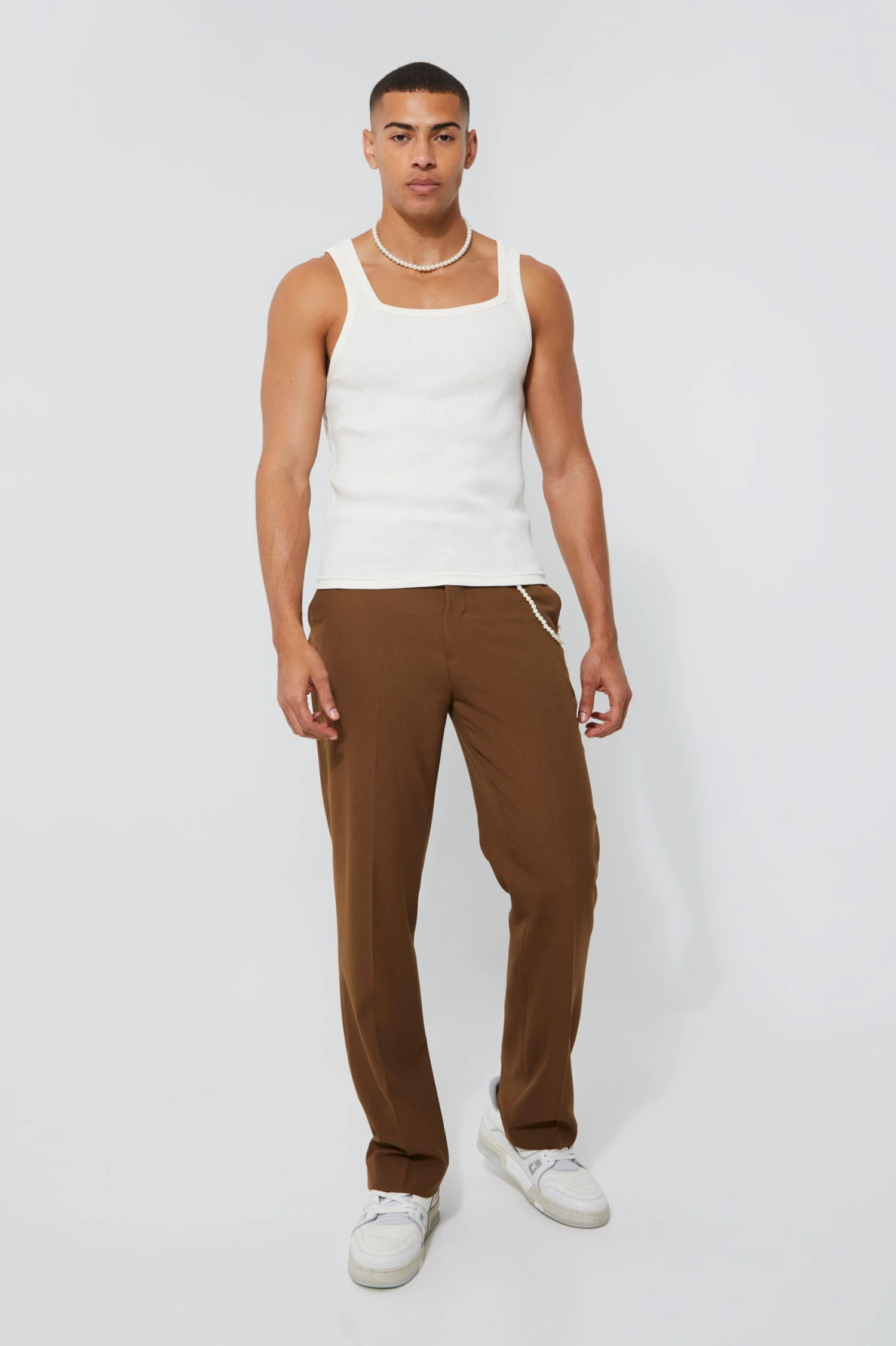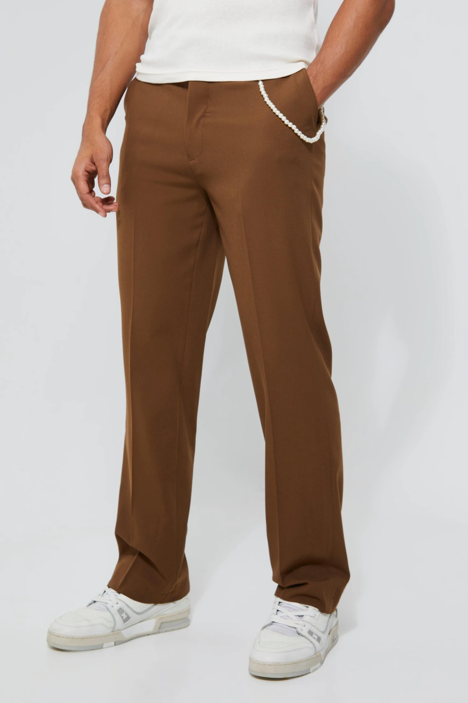 Vous ne savez pas quoi porter pour avoir un look habillé ? boohoo vous propose une collection de pantalons de costume pour homme qui seront parfaits pour vous accompagner au travail. Associez-les avec des chaussures de ville et optez pour une chemise oxford pour un total look workwear. Pour un style décontracté, ce pantalon de costume se mariera parfaitement avec une paire de baskets et un t-shirt.